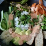 - 🌶️Gochujang-Karotten mit Zitronen-Hummus, gerösteten Kichererbsen & Crispy Chili Oil*