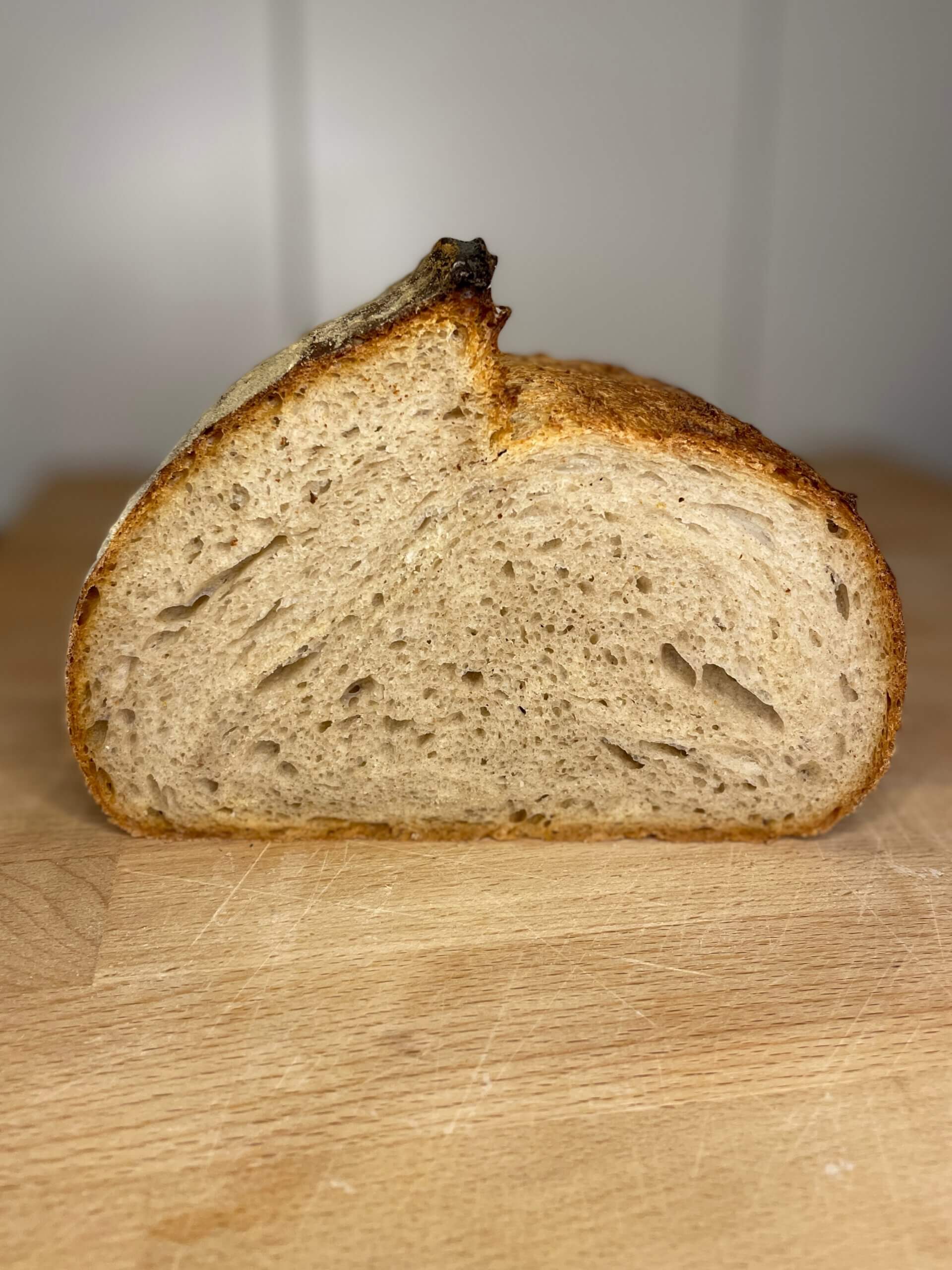 Ob pur mit guter Butter, herzhaft mit Wurst oder kräftigem Käse zur Vesper oder süß als Nutellabrot zum Frühstück — dieses Sauerteigbrot macht einfach immer eine gute Figur.